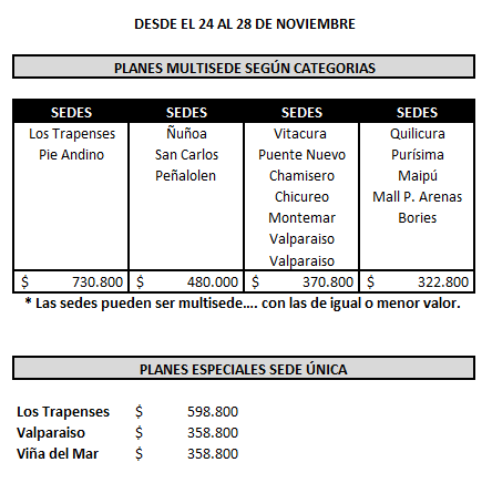 Valores preferenciales. Planes mensuales, trimestrales, semestrales y anuales